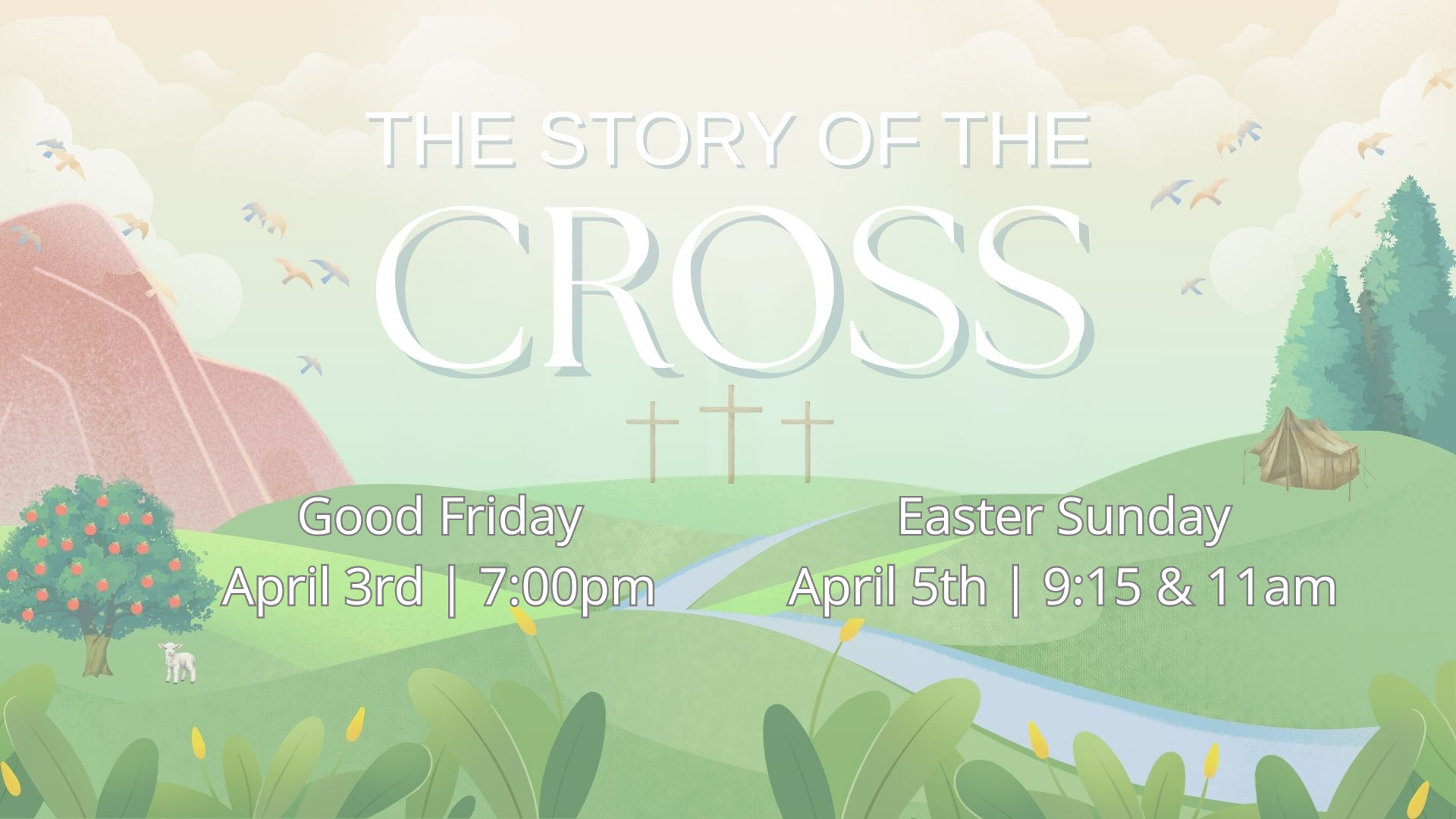 Join us for Good Friday, April 3rd at 7pm and Easter Sunday, April 5th at 9:15am or 11am.