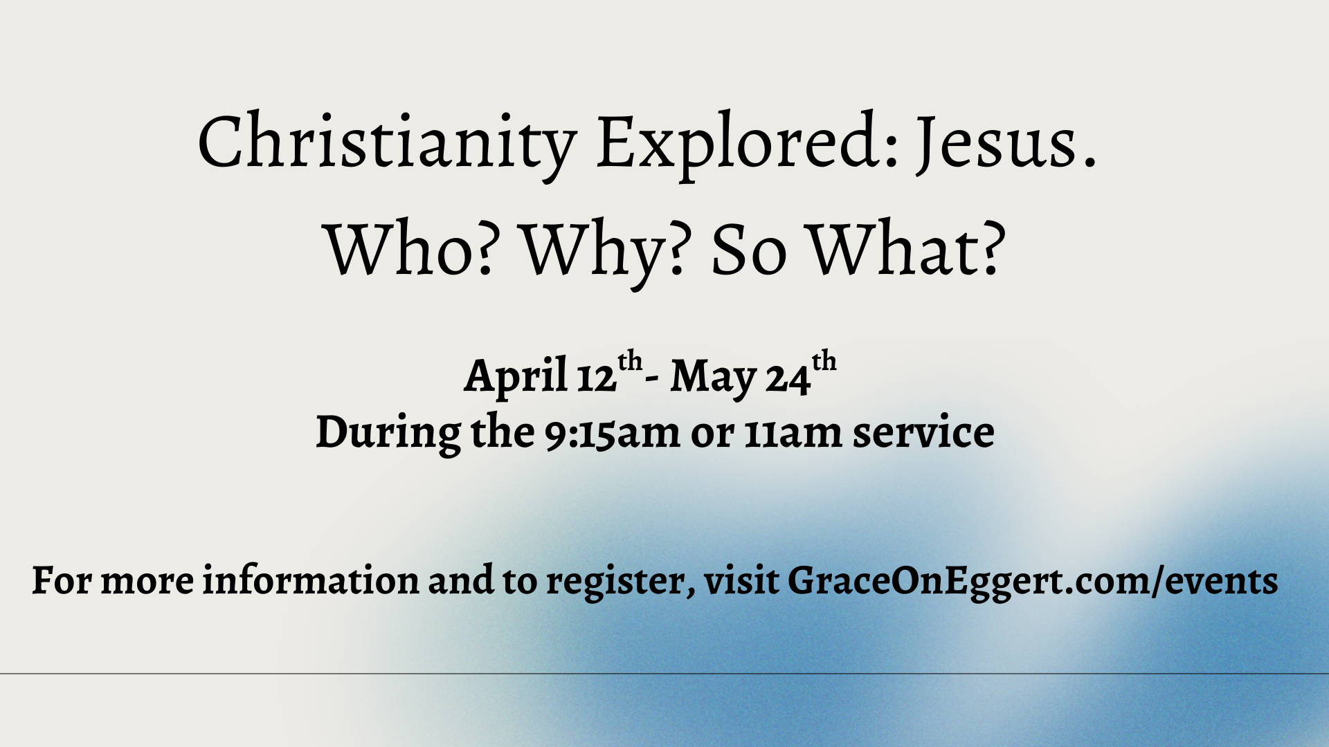 Christianity Explored- April 12th-May 24th Sunday Mornings